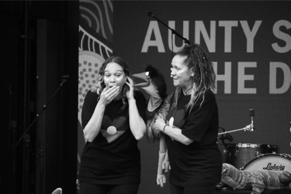 The Aunty Sharron Show: is a vibrant and engaging live performance that connects young audiences and their families with First Nations culture through storytelling, dance, music, animation, and puppetry.