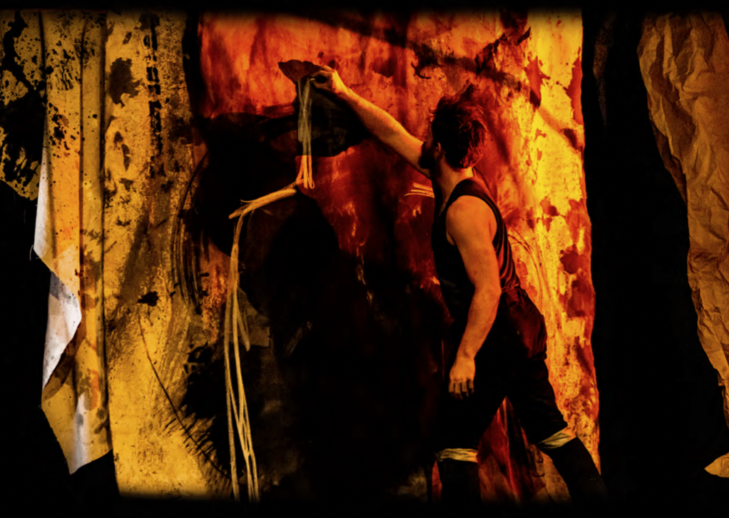 Working on a grand scale, Jake uses his acrobatic movement to inform the creation of a series of large-scale drawings and paintings that bring this narrative into clear focus during the show. Balancing between abstract and familiar, this physical theatre work is an example of the cutting edge of Australian contemporary circus. The work fills the theatre space with hanging images and large sprawling drawings that lead audiences through the life and experience of one man who must put his hands into the ashes of his home to see what can be saved.