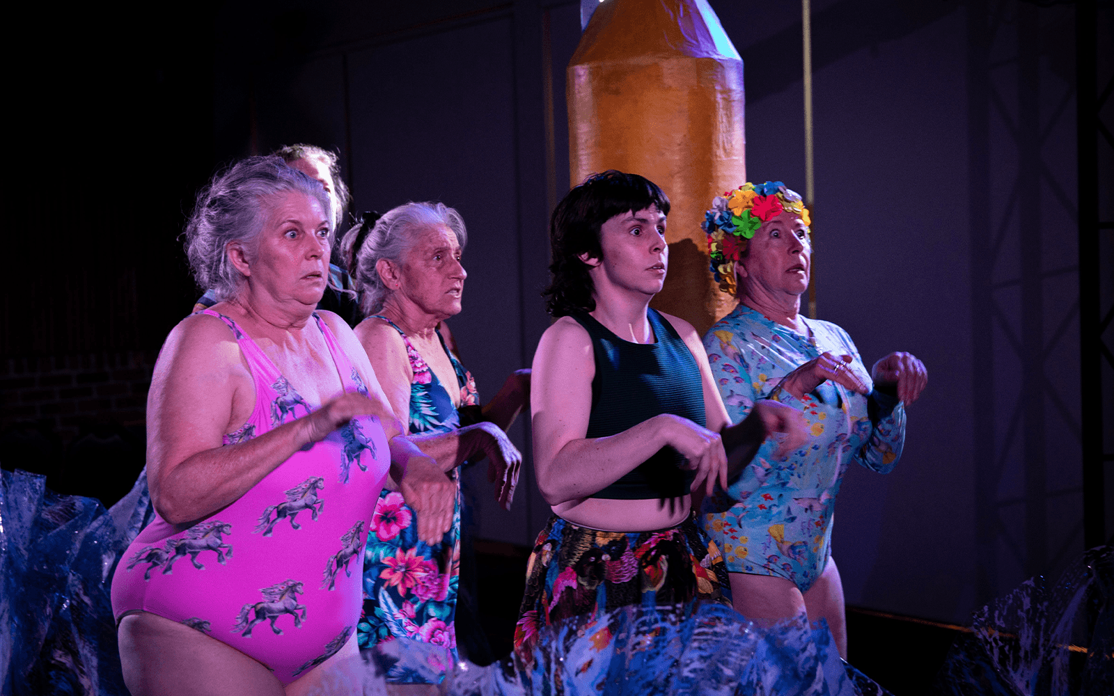 A metaphorical plunge into the joys and challenges of cold water swimming. Sea Wolves Howl features older female and gender-fluid actors strutting their stuff in their togs, speaking and singing the words of people whose lives have been transformed by finding their wet and wild together.
